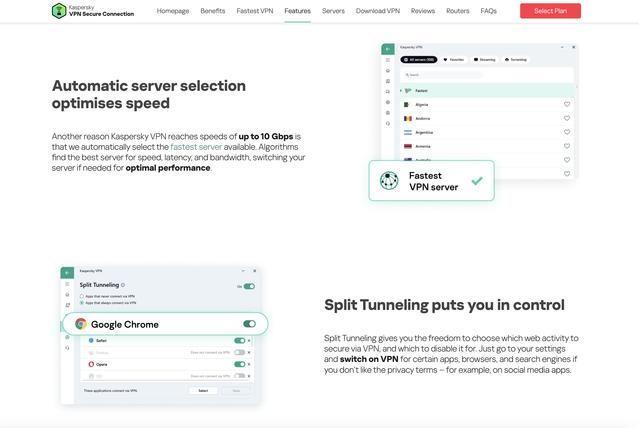 A collection of SEO-optimised webpages that outline the benefits and features of Kaspersky VPN. We created 14 new webpages that expanded on topics like ‘VPN benefits’, ‘VPN features’ and ‘VPN servers’, all designed to give users the information they were looking for.